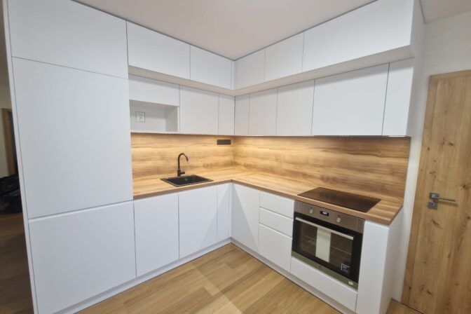 Podľa návrhu dizajnéra sme zhotovili modernú kuchynskú linku s čistými líniami a kvalitnými materiálmi. Kuchyňa je navrhnutá tak, aby spájala praktickosť s eleganciou, pričom integrované spotrebiče a dostatok úložného priestoru zaručujú vysokú funkčnosť.